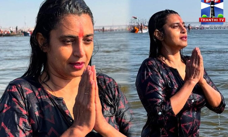 உத்தரப்பிரதேசம் கும்பமேளாவில் நடிகை கஸ்தூரி புனித நீராடினார்.