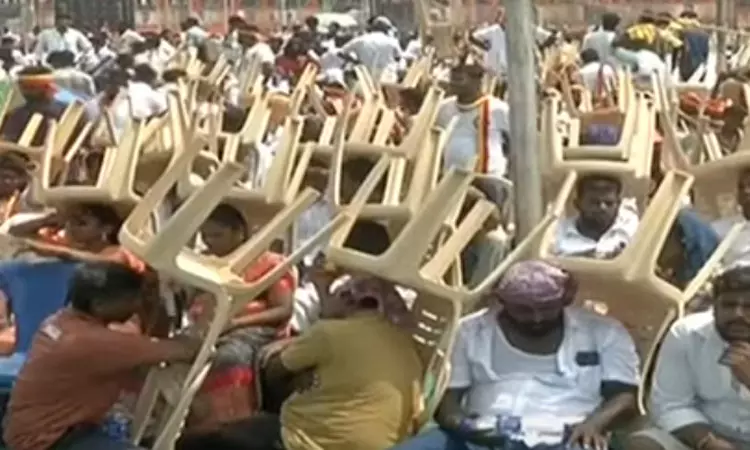 மாநாட்டு திடலில் கடும் வெயிலால், சேர்களை குடையாக பிடித்தப்படி தலையில் தூக்கி வைத்து தரையில் தொண்டர்கள் அமர்ந்திருந்தனர். நீர்சத்து குறைபாட்டால் பெண்கள் பலர் மயக்கம் அடைந்த நிலையில் விஜய் நிர்வாகிகளை அழைத்து கண்டித்ததாக கூறப்படுகிறது. மாநாட்டிற்கு சரியாக தண்ணீர் விநியோகம் செய்ய முடியவில்லையா? சரியாக திட்டமிடவில்லையா? ஏன் இந்த சொதப்பல்? என நிகழ்ச்சி ஒருங்கிணைபாளரிடம் விஜய் கேள்வி எழுப்பியதாக தகவல் வெளியாகி உள்ளது. மேலும் விஜய் நடந்து வருவதற்காக அமைக்கப்பட்டுள்ள பாதையில் இருந்து தண்ணீர் பாட்டில்களை தொண்டர்கள் நோக்கி வீசிய நிர்வாகிகளை விஜய் கண்டித்தாக கூறப்படுகிறது.