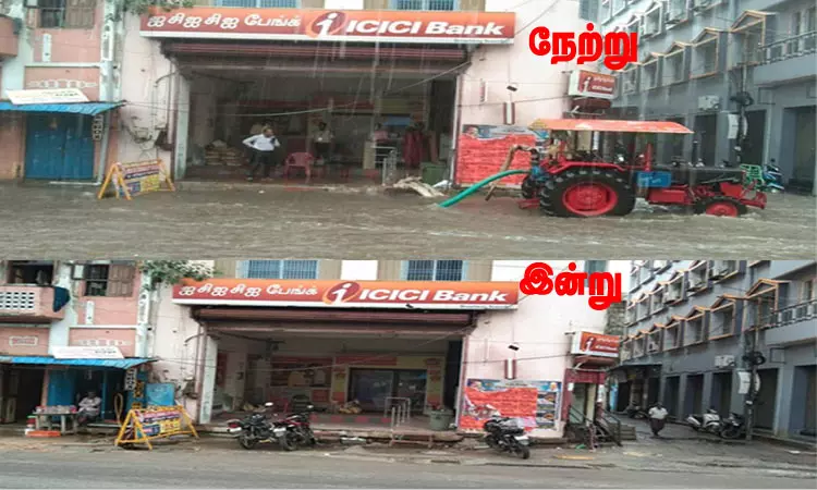 கனமழை காரணமாக ராயபுரம் மண்டலம் வார்டு 56 பிரகாசம் சாலை பகுதியில் நேற்று மழை நீர் தேங்கி இருந்த நிலையில் மாநகராட்சி ஊழியர்கள் டிராக்டரில் பொருத்தப்பட்ட மோட்டார் மூலம் நீரை அகற்றினர். தற்போது அந்த பகுதியில் முழுமையாக மழை நீர் வடிந்துள்ளது.