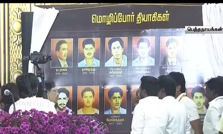 சேலத்தில் நடைபெற்று வரும் திமுக இளைஞர் அணியின் 2-வது மாநில மாநாட்டில் தமிழ் மொழிப்போர் தியாகிகளுக்கு மரியாதை செலுத்தப்பட்டது.