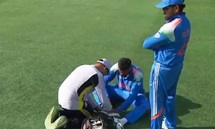 டேரில் மிட்செல் நேராக அடித்த பந்து அந்த ஓவரை வீசிய வருண் சக்ரவர்த்தியின் காலில் பட்டதில் அவருக்கு காயம் ஏற்பட்டது.