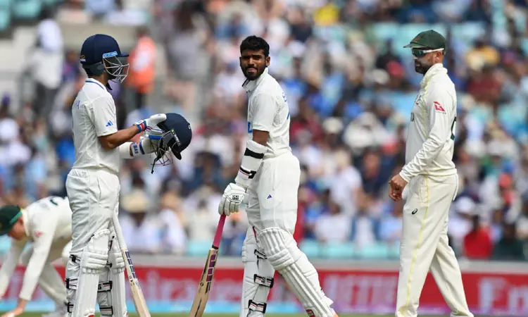 கம்மின்ஸ் வீசிய பந்து பரத்தின் தலையில் பலமாக தாக்கியது.