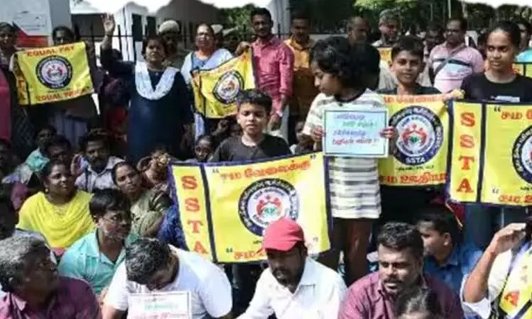 - சம ஊதியம் கோரிக்கையை வலியுறுத்தி 10வது நாளாக இடைநிலை ஆசிரியர்கள் போராட்டம்