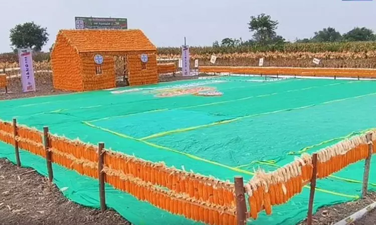 ஓட்டகோவில் கிராமத்தில் அறுவடைக்கு தயாரான நிலையில் இருந்த சோளக்கதிர்களை வைத்து ஒரு Model வீட்டையே கட்டியுள்ள விவசாய தம்பதி.