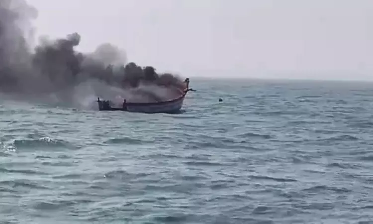 நடுக்கடலில் தீப்பிடித்து எரிந்த பைபர் படகு