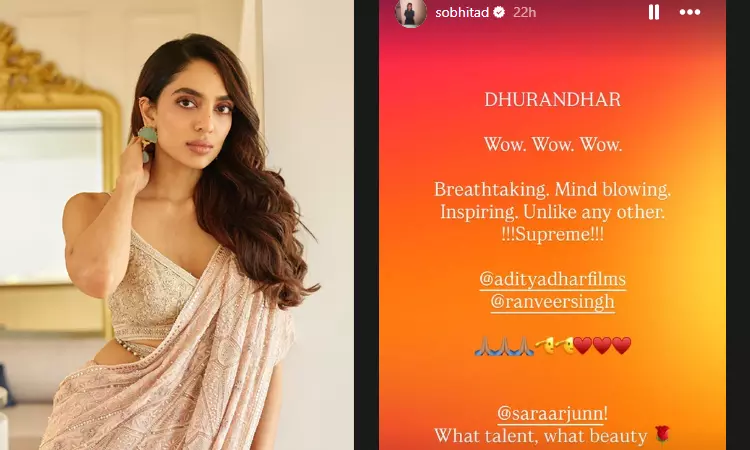 சமூக ஊடகங்களில் தீவிரமாக இருக்கும் சோபிதா, சமீபத்தில் இன்ஸ்டாகிராம் ஸ்டோரிஸில் ஒரு சுவாரஸ்யமான பதிவை வெளியிட்டார். கடந்த சில நாட்களாக இந்திய பாக்ஸ் ஆபீஸை அதிரவைத்து வரும் துரந்தர் படத்தைப் பாராட்டினார். 'வாவ்.. வாவ்.. வாவ்.. என்று பதிவிட்டார்.