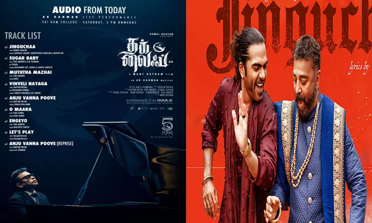 'தக் லைப்' படத்தின் இசைவெளியீட்டு விழா தற்போது நடைபெற்று வருகிறது. 'தக் லைப்' படத்தில் இடம்பெற்றுள்ள பாடல்கள் குறித்த தகவல் வெளியாகி உள்ளது. அதன்படி, படத்தில் மொத்தம் 9 பாடல்கள் உள்ளது. ஜிங்குச்சா, சுகர் பேபி, முத்த மழை, விண்வேலி நாயகா , அஞ்சு வண்ண பூவே, ஓ மாரா, எங்கேயோ, லெட்ஸ் பிளே, அஞ்சு வண்ண பூவே ஆகிய பாடல்கள் படத்தில் இடம்பெற்றுள்ளன.