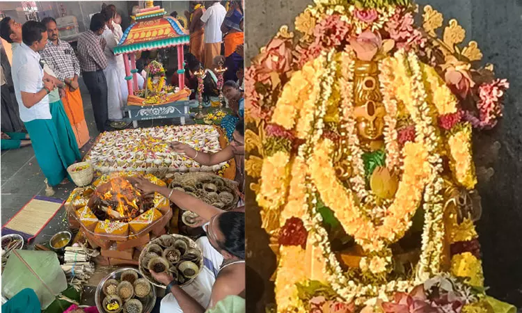அதனைத் தொடர்ந்து பால், தயிர், பன்னீர், இளநீர், சந்தனம், மஞ்சள், திருமஞ்சனம், பஞ்சாமிர்தம் உள்ளிட்ட 18 வகையான திரவியங்களால் அபிஷேகம் நடைபெற்றது. அதனைத் தொடர்ந்து பல்வேறு மலர்களால் அலங்காரம் செய்யப்பட்டு தீபாராதனை காட்டப்பட்டது.