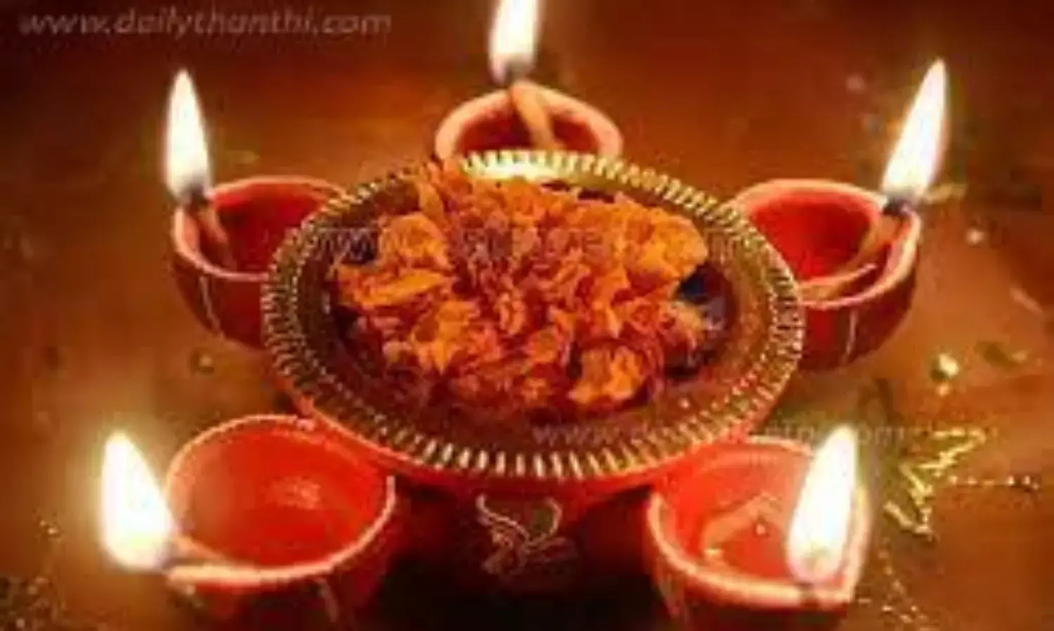 அன்று வாசலில் 2 தீபங்களும், பூஜை அறையில் 5 தீபங்களும் ஏற்ற வேண்டும். இந்த 5 தீபங்களையும் வட்டமாக எல்லா திசைகளிலும் வெளிச்சம் படும்படி ஏற்ற வேண்டும். நெய் ஊற்றி விளக்கு ஏற்றினால் இன்னும் சிறப்பு.