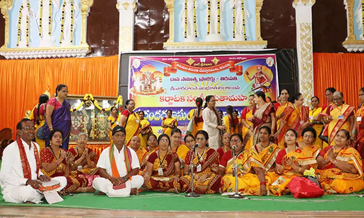 புரந்தரதாசர் ஆராதனை மகோற்சவத்தின் ஒரு பகுதியாக வெங்கடேஸ்வரா நவரத்ன சங்கீர்த்தன நிகழ்ச்சி 12-ம் தேதி திருமலை பாபவிநாசனம் சாலையில் உள்ள கல்யாண மஸ்து அரங்கில் நடந்தது. நிகழ்ச்சியில் 300 புகழ்பெற்ற கலைஞர்கள் பங்கேற்று வெங்கடேஸ்வரரை போற்றி புரந்தரதாசரால் இயற்றப்பட்ட, நவரத்தினங்கள் போன்ற 9 பக்தி பாடல்களை பாடினர்.
