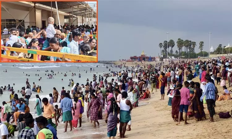 அதிகாலை 4 மணிக்கு கோவில் நடை திறக்கப்பட்டு, 4.30 மணிக்கு விஸ்வரூப தீபாரதனையும், 6 மணிக்கு உதயமார்த்தாண்ட அபிஷேகமும், தீபாராதனையும் நடந்தது. தொடர்ந்து மற்ற கால பூஜைகள் நடைபெற்றன. திரளான பக்தர்கள் அதிகாலை முதலே கடல் மற்றும் நாழிக்கிணறு தீர்த்தத்தில் புனித நீராடி சுமார் 4 மணி நேரம் நீண்ட வரிசையில் காத்து நின்று சாமி தரிசனம் செய்தனர்.