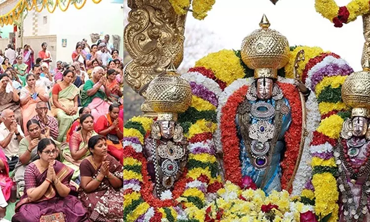 அங்கு காலை 10 முதல் 11.30 மணி வரை உற்சவர்களான சீதா, ராமர், லட்சுமணருக்கு மஞ்சள், குங்குமம், சந்தனம், பால், தயிர், தேன், இளநீர் போன்றவற்றால் அபிஷேகம் செய்யப்பட்டது. பின்னர் சிறப்பு அலங்காரம் செய்யப்பட்டு பூஜைகள் நடைபெற்றன. அதன்பிறகு மாலை 4 முதல் 5 மணி வரை ஊஞ்சல் சேவை நடத்தப்பட்டது. ஊஞ்சல் சேவை முடிந்ததும், கூப்புச்சந்திரப்பேட்டை கிராமத்தில் இருந்து மாலை 5.30 மணியளவில் உற்சவர்கள் புறப்பட்டு இரவு 9 மணியளவில் கோவிலை அடைந்தனர்.