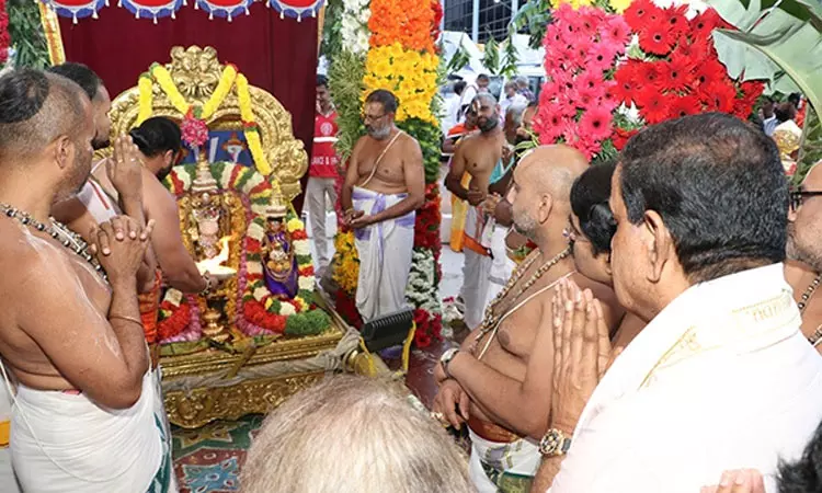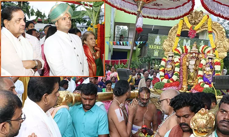 கர்நாடக சத்திரத்தில் எழுந்தருளிய மலையப்ப சுவாமிக்கு மைசூர் மகாராஜாவின் வம்சத்தினர் ஆரத்தி எடுத்து வழிபட்டனர்.