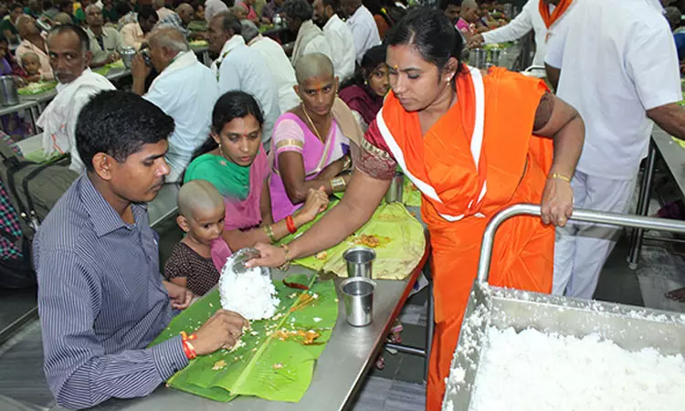 திருமலை திருப்பதி தேவஸ்தானத்தின் அன்னப்பிரசாதத் துறையின் முயற்சிகளால், விரிவான ஒழுங்கமைக்கப்பட்ட உணவு விநியோக அமைப்பு மூலம் தினமும் சுமார் மூன்று லட்சம் பக்தர்களுக்கு உணவு வழங்கப்படுகிறது.