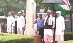 தேசியக் கொடியை ஏற்றி வைத்து மல்லிகார்ஜுன கார்கே, ராகுல் காந்தி ஆகியோர் மரியாதை செலுத்தினர்.