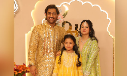 திருமண விழாவில் மனைவி சாக்ஷி மற்றும் மகளுடன் கலந்துகொண்ட கிரிக்கெட் வீரர் டோனி