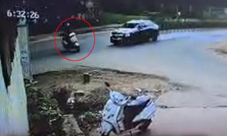 அப்போது சாலையில் வேகமாக வந்த சொகுசு கார் கண் இமைக்கும் நேரத்தில் ஸ்கூட்டர் மீது மோதியது. இதில் ஸ்கூட்டரில் சென்ற நபர் தூக்கி வீசப்பட்டு சம்பவ இடத்திலேயே ரத்த வெள்ளத்தில் உயிரிழந்தார்.