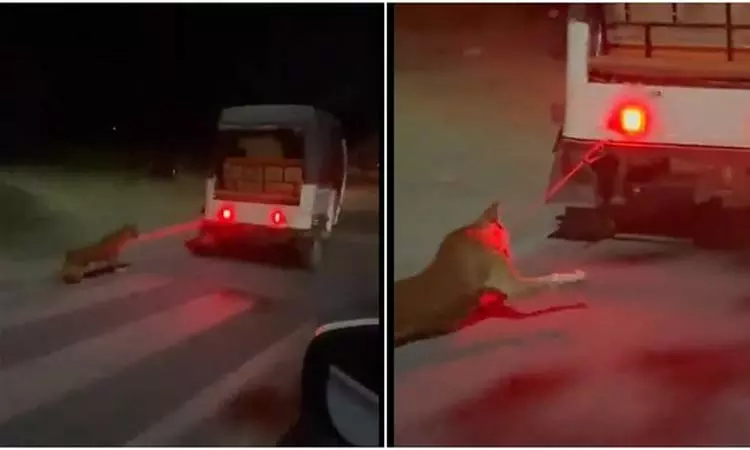 ஆட்டோவின் பின்பக்கத்தில் கயிற்றில் கட்டப்பட்ட நாய் சாலையில் இழுத்து செல்லப்பட்ட வீடியோ சமூகவலைதளத்தில் வைரலானது. இது தொடர்பாக போலீசார் உரிய நடவடிக்கை எடுக்கவேண்டுமென சமூகவலைதளத்தில் கருத்துக்கள் எழுந்தன.