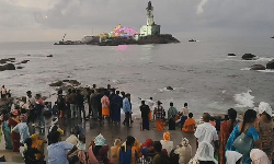 ஞாயிறு விடுமுறையை ஒட்டி, கன்னியாகுமரியில் குவிந்த சுற்றுலா பயணிகள். அதிகாலை முதல் காத்திருந்து சூரிய உதயத்தை கண்டு ரசித்தனர். கடல் அலைகள் ஆக்ரோஷத்துடன் காணப்படுவதால், விவேகானந்தர் மண்டபம், திருவள்ளுவர் சிலை இடையிலான படகு சேவை தற்காலிக ரத்து செய்யப்பட்டுள்ளது. இதனால் சுற்றுலா பயணிகள் ஏமாற்றம் அடைந்தனர்.