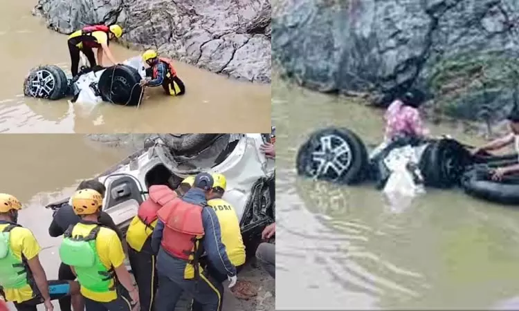 ஆற்றுக்குள் கார் கவிழ்ந்து விபத்து; 5 பேர் பலி, பெண் உயிருடன் மீட்பு