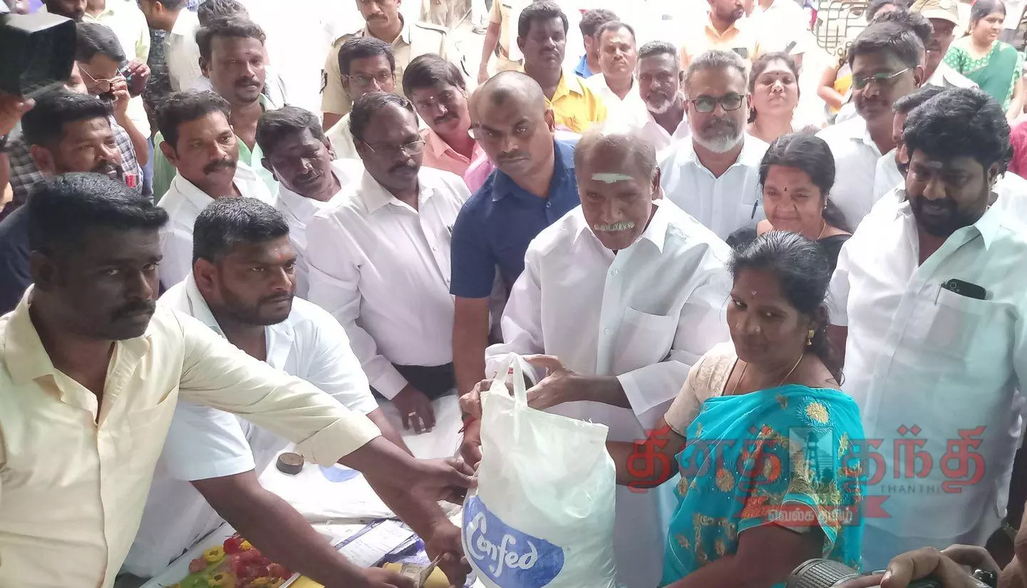 தீபாவளி பண்டிகையையொட்டி மலிவு விலையில் 30 வகையான மளிகை பொருட்கள் விற்பனையை முதல்-அமைச்சர் ரங்கசாமி தொடங்கி வைத்தார்.