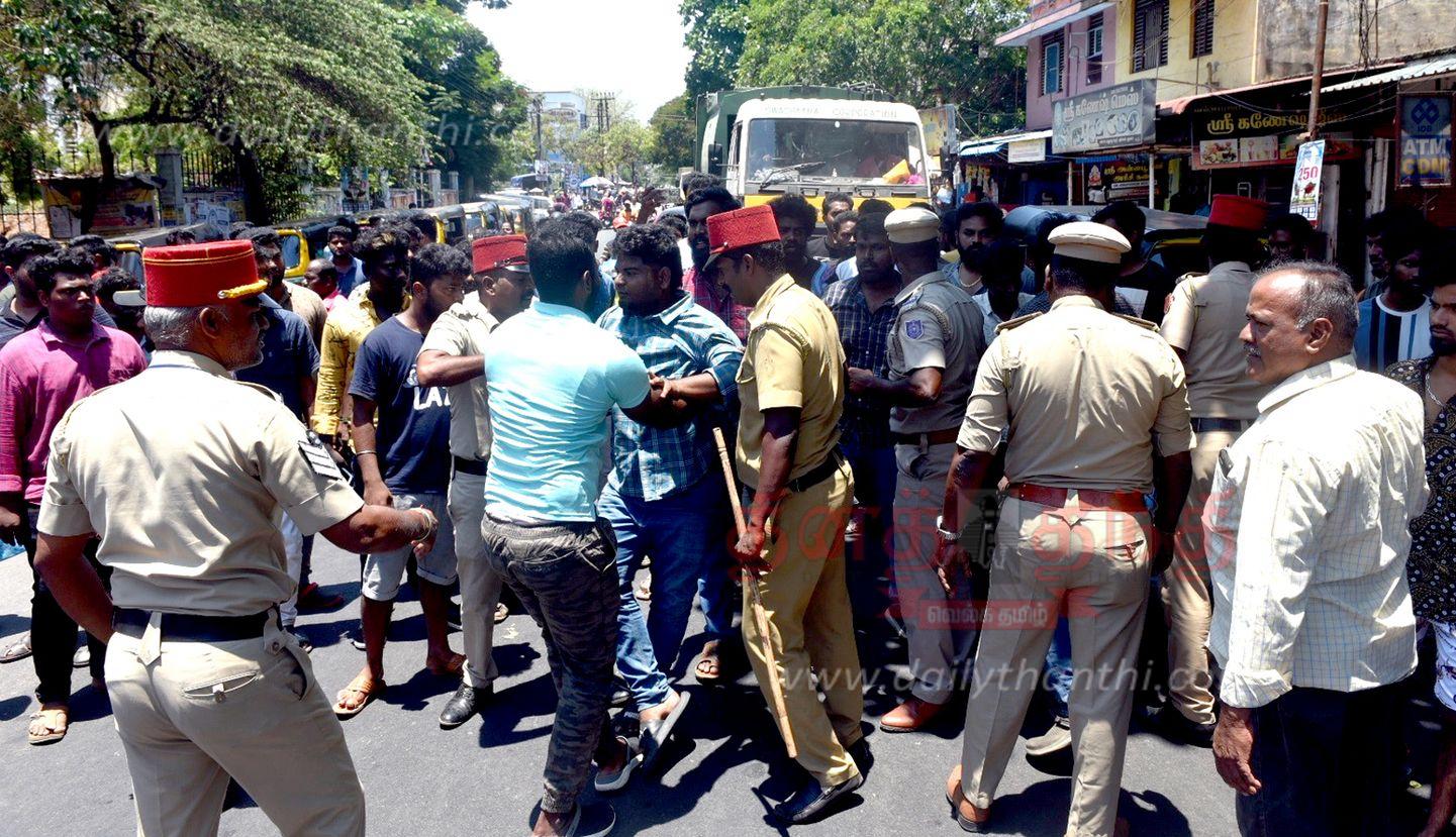 இந்த நிலையில் விஷால் உடல் இன்று காலை கதிர்காமம் அரசு மருத்துவக்கல்லூரி மருத்துவமனையில் பிரேத பரிசோதனை முடிந்து உறவினர்களிடம் ஒப்படைக்கப்பட்டது. ஆனால், அவர்கள் உடலை வாங்க மறுத்த உறவினர்கள், மருத்துவக்கல்லூரி மருத்துவமனை முன்பு வழுதாவூர் சாலையில் மறியல் போராட்டம் நடத்தினர். தகவல் அறிந்த கோரிமேடு போலீசார் அங்கு விரைந்து சென்று போராட்டத்தில் ஈடுபட்டவர்களிடம் பேச்சுவார்த்தை நடத்தினர். அப்போது போலீசாருக்கும், மறியலில் ஈடுபட்டவர்களுக்கும் இடையே தள்ளுமுள்ளு ஏற்பட்டது. இதனால், அங்கு சற்று பரபரப்பு ஏற்பட்டதுடன் போக்குவரத்தும் பாதிக்கப்பட்டது.