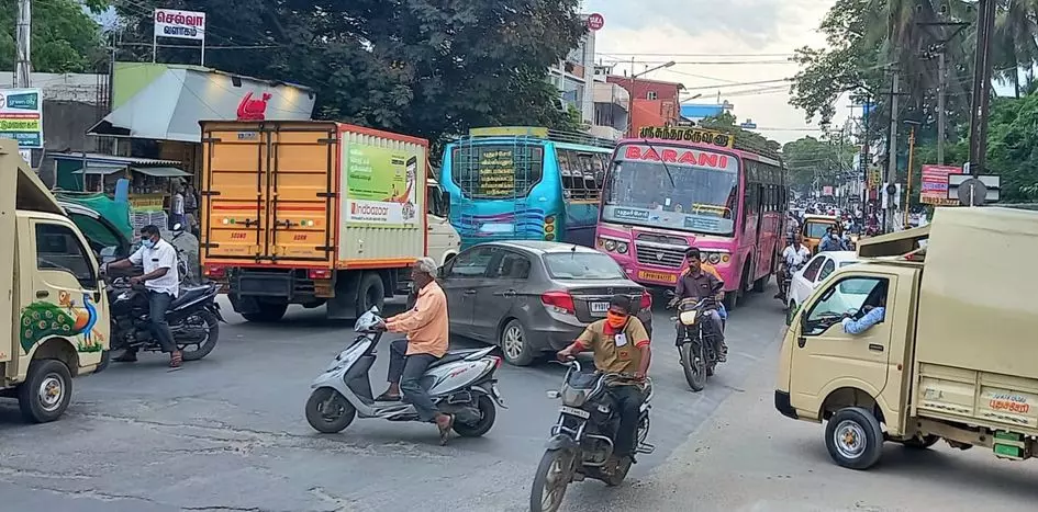குறிப்பாக பெருமாள் ராஜா கார்டன் பகுதியில் 80 அடி வரை அகலம் உள்ளது. ஆனால் சாலையின் நடுவிலேயே மின் கம்பங்கள் அகற்றப்படாமல் உள்ளன. அதையொட்டி ஆக்கிமிப்பு கடைகள் நெருக்கமாக இருப்பதால் போக்குவரத்துக்கு லாயக்கற்றதாக உள்ளது. ஆங்காங்கே பள்ளம் தோண்டப்பட்டு மூடப்படாமல் விடப்பட்டு இருப்பதும் விபத்துக்கு காரணமாகிறது.