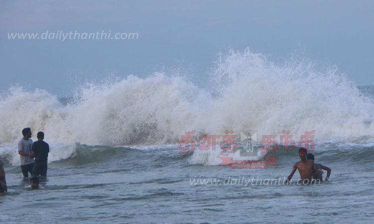அலையின் சீற்றம் காரணமாக புதுவைக்கு வந்த சுற்றுலா பயணிகள் கடலில் இறங்க தயங்கினார்கள். இருந்தபோதிலும் சிலர் கடலுக்குள் இறங்கி பயமின்றி குளித்தனர்.