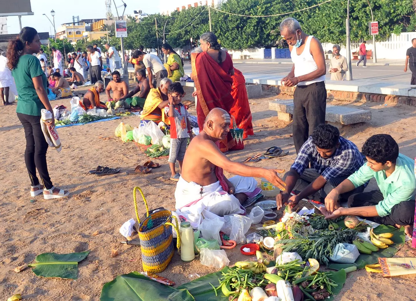 மகாளய அமாவாசையை முன்னிட்டு புதுவை கடற்கரை, திருக்காஞ்சியில் முன்னோர்களுக்கு தர்ப்பணம் வழங்கப்பட்டது.