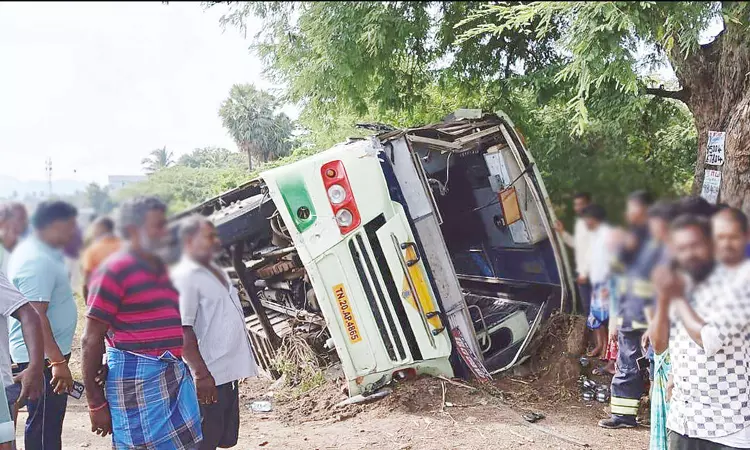 கிருஷ்ணகிரி அருகே பஸ் கவிழ்ந்து விபத்து - 34 பேர் காயம்
