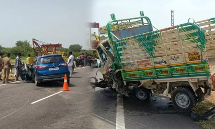 சென்னை பெருங்களத்தூரை சேர்ந்தவர் குமார் (57). இவர் தனது மனைவி ஜெயா (55), மகள் மோனிஷா (30) மற்றும் ஸ்டாலின் (36), அவரது மனைவி துர்கா (32), சிறுமி நிவேனி சூரியா (3) ஆகியோருடன் ஆன்மிக சுற்றுலாவாக காரில் புறப்பட்டார். இன்று (ஜூலை 8 )காலை கும்பகோணம் கோவில்களில் சுவாமி தரிசனம் செய்துவிட்டு தஞ்சாவூர் பெரிய கோவிலுக்கு புறப்பட்டனர். கும்பகோணம் - தஞ்சாவூர் தேசிய நெடுஞ்சாலையில் கார் வந்து கொண்டு இருந்தது. காரை ஸ்டாலின் ஓட்டி வந்தார்.