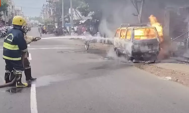 திடீரென தீப்பற்றி எரிந்த கார் - ஈரோடு அருகே அதிர்ச்சி சம்பவம்