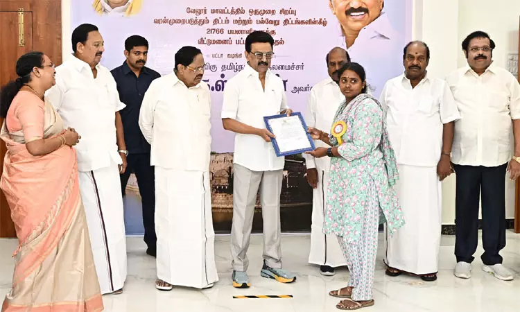 முதல்-அமைச்சர் மு.க.ஸ்டாலின் இன்று வேலூர் மாவட்டத்தில் பல்வேறு நிகழ்ச்சிகளில் கலந்து கொண்டார். அப்போது, காட்பாடி வட்டம் சேர்க்காடு கிராமத்தைச் சேர்ந்த கூலித் தொழிலாளி பொற்செல்வி என்பவர் முதல்-அமைச்சரிடம் கோரிக்கை மனு ஒன்றை அளித்தார். அதில் அவர் ஆதரவற்ற நிலையில் வறுமை சூழ்நிலையில் வாழ்வதாக மனுவில் குறிப்பிட்டிருந்தார்.