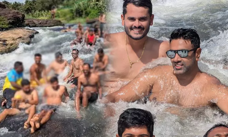 கிரிக்கெட் வீரர் அஸ்வின் நண்பர்களோடு பரளியாற்றில் குளித்துள்ளார்.