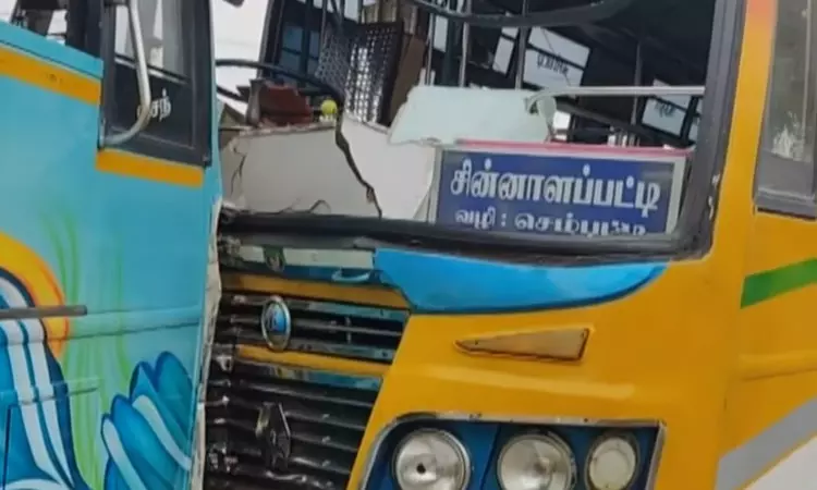 திண்டுக்கல்: தனியார் பஸ்கள் நேருக்கு நேர் மோதி விபத்து - 15 பேர் காயம்