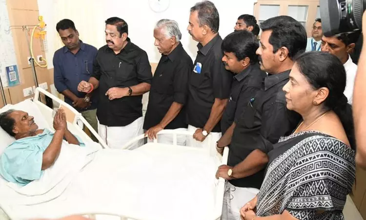 இந்த நிலையில், உடல்நலக் குறைவால் சென்னை மருத்துவமனையில் அனுமதிக்கப்பட்டுள்ள அதிமுக அவைத் தலைவர் தமிழ்மகன் உசேனை அதிமுக பொதுச்செயலாளர் எடப்பாடி பழனிசாமி நேரில் சந்தித்து நலம் விசாரித்தார். மேலும் அவருக்கு அளிக்கப்படும் சிகிச்சைகள் குறித்து மருத்துவர்களிடம் கேட்டறிந்தார். அப்போது முன்னாள் அமைச்சர்கள் எஸ்.பி.வேலுமணி, கே.பி.முனுசாமி, விஜயபாஸ்கர், காமராஜ் உள்ளிட்டோர் உடனருந்தனர்.