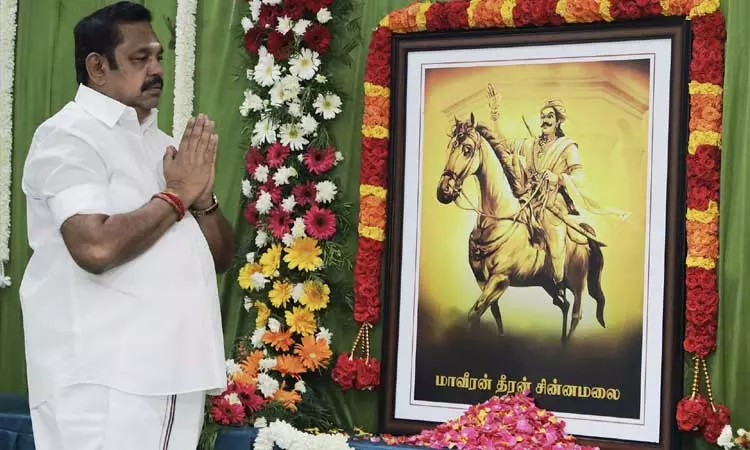 சுதந்திரப் போராட்ட வீரர் தீரன் சின்னமலை உருவப் படத்திற்கு எடப்பாடி பழனிசாமி மரியாதை