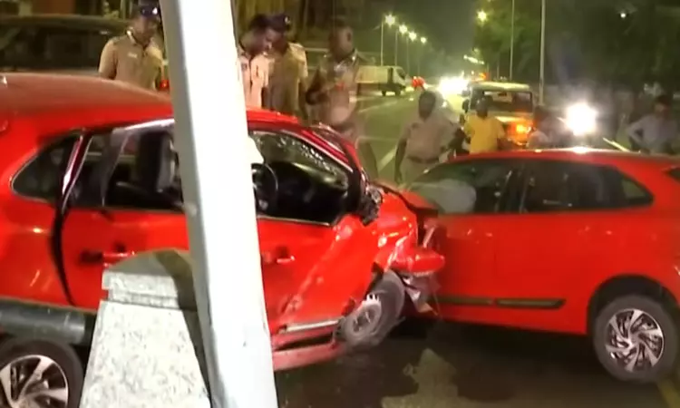 சென்னை மெரினா சாலையில் அதிவேகமாக சென்ற கார், தடுப்புச்சுவரில் மோதி விபத்துக்குள்ளானது.