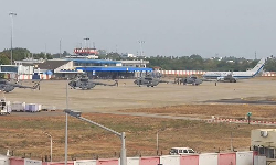 திருச்சி விமான நிலையத்தில் தயார் நிலையில் ஹெலிகாப்டர்கள்