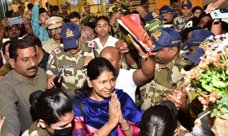 சுற்றுப்பயணத்தை முடித்துக்கொண்டு சென்னை திரும்பிய கனிமொழி எம்.பி.க்கு உற்சாக வரவேற்பு