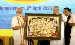 ராமேசுவரத்தில் நடைபெற்றும் நிகழ்ச்சியில் பிரதமர் மோடிக்கு ராமரின் பட்டாபிஷேக ஓவியத்தை மத்திய மந்திரி அஸ்வினி வைஷ்ணவ் வழங்கினார். நிதி அமைச்சர் தங்கம் தென்னரசு திருவள்ளுவர் உருவச்சிலையை பிரதமர் மோடிக்கு வழங்கினார்