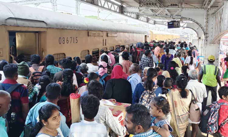 இதனால், நெல்லை சந்திப்பு ரெயில் நிலையத்திலிருந்தும், வழியாகவும் இயக்கப்பட்ட ரெயில்களில் பயணிகள் கூட்டம் அலைமோதியது. ஏற்கனவே ரெயில்களில் இருக்கைகள் நிரம்பிவிட்ட நிலையில், புதிதாகவும் சிறப்பு ரெயில்கள் சென்னை உள்ளிட்ட பகுதிகளுக்கு அறிவிக்கப்பட்டன. ஆனால் அவையும் சில நிமிடங்களிலேயே விற்றுத் தீர்ந்தன.நேற்று அந்தியோதயா ரெயிலில் ஏற்கனவே பெரும்பாலான இருக்கைகள் நிரம்பியதால், நடைபாதை மற்றும் படிக்கட்டு அருகில் ஏராளமானவர்கள் அமர்ந்தும் நின்றும் பயணம் செய்தனர். இன்றும் காலையிலேயே வந்த ரெயில்களில் பயணிகள் முண்டியடித்துப் ஏறிச் சென்றனர். இன்று மாலை இயக்கப்படும் அந்தியோதயா ரெயிலில் இடம் பிடிக்கவும், நெல்லை எக்ஸ்பிரஸ் ரெயிலில் முன்பதிவு இல்லாத பெட்டிகளில் பயணிக்கவும் காலை முதலே ரெயில் நிலையத்தில் பயணிகள் வரிசைபோட்டு காத்திருந்தனர்.
