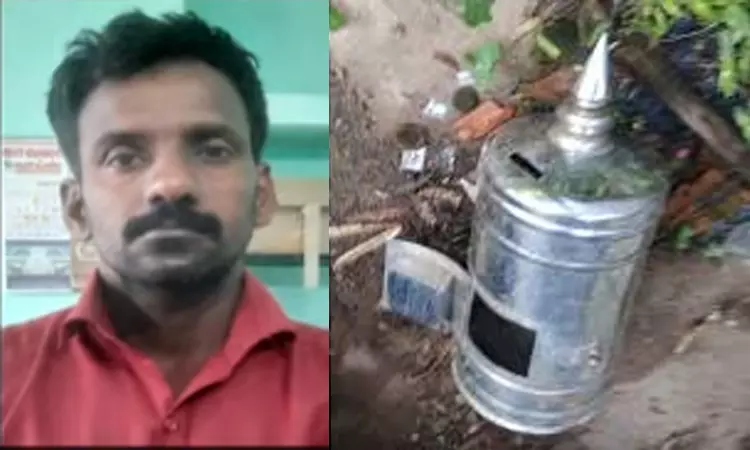 கோவில் கருவறை கதவை இரும்பு கம்பி மூலம் உடைத்து அங்கிருந்த பொருட்களையும் திருடியுள்ளார்.