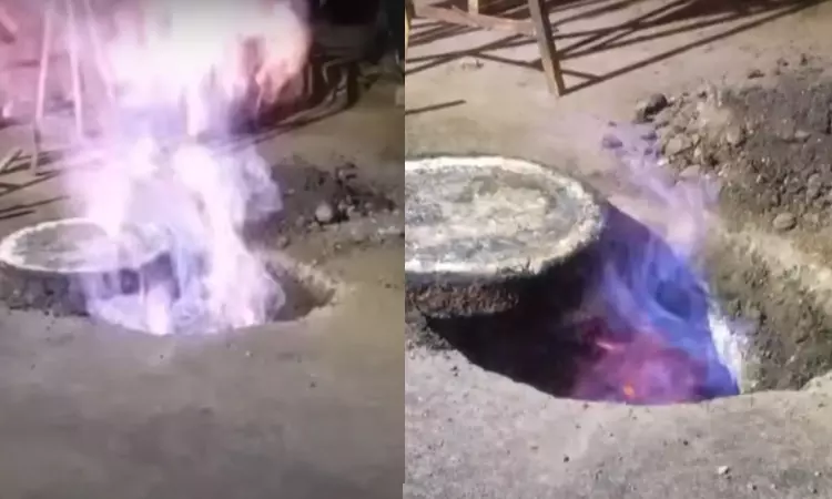 அப்போது திடீரென கேஸ்சில் இருந்து வரும் தீயை போல தீ பற்றி எரிந்தது. இதனைக்கண்ட அப்பகுதி மக்கள் பெரும் அதிர்ச்சியடைந்தனர். இந்த நிலையில் நகராட்சி ஊழியர்கள் அப்பகுதியில் உள்ள அனைத்து கால்வாய்களிலும் ஆய்வு நடத்தினர். தற்போது இந்த பிரச்சினையை சரி செய்யும் பணியில் தீவிரமாக ஈடுபட்டு வருகின்றனர்.