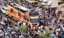 விமான நிலையத்தில் இருந்து மரக்கடை பிரசார பாயிண்ட் வரை வழிநெடுக ரசிகர்கள் திரண்டிருப்பதால், விஜயின் பிரசார வாகனம் மெதுவாக ஊர்ந்து சென்று கொண்டிருக்கிறது. தற்போது பிரசாரம் செய்ய உள்ள மரக்கடை பகுதியை விஜய் நெருங்கி வரும்நிலையில், கட்டுக்கடங்காமல் கூட்டம் குவிந்து வருகிறது.