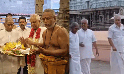 திருவண்ணாமலை அருணாசலேஸ்வரர் கோவிலுக்கு இன்று காலை இசைஞானி இளையராஜா வருகை தந்தார். இதையடுத்து விநாயகர். அண்ணாமலையார், மூலவர் உள்ளிட்ட சன்னதிகளை தரிசனம் செய்தார். இதைத் தொடர்ந்து இசைஞானி இளையராஜாவிற்கு திருக்கோவில் நிர்வாகம் சார்பாக மலை அணிவித்து சாமி பிரசாதம் வழங்கப்பட்டது.