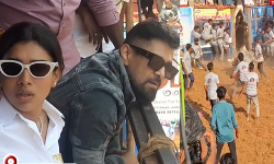 நத்தமாடிபட்டியில் விறுவிறுப்பாக நடைபெற்று வரும் ஜல்லிக்கட்டு போட்டியை நடிகர் விக்ரம் - நடிகை துஷாரா விஜயன் பார்வையிட்டனர்.