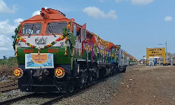 பாம்பன் புதிய பாலம் திறக்கப்பட்ட பிறகு, தொடங்கப்பட உள்ள ரெயில் சேவைக்காக தயார் நிலையில் மண்டபம் ரெயில் நிலையத்தில் நிறுத்தப்பட்டுள்ள ரெயில்.