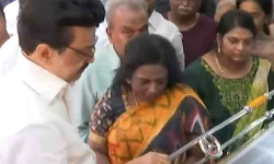 குமரி அனந்தன் உடலுக்கு முதல்- அமைச்சர் முக.ஸ்டாலின் நேரில் சென்று அஞ்சலி செலுத்தினார். அவரது மகளான தமிழிசை சவுந்தரராஜனுக்கு ஆறுதல் கூறினார்.