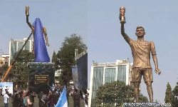 பிரபல கால்பந்து வீரர் லயோனல் மெஸ்சியின் 70 அடி உயர சிலை திறப்பு; ரசிகர்கள் உற்சாக கோஷம்